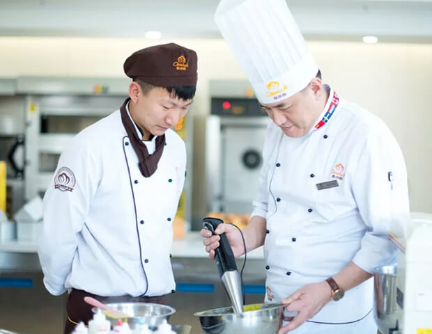 来自世界各大洲的外教与学生零距离互动,从发展环境、制作流程到创业开店,教授学员,纯正法式甜点。