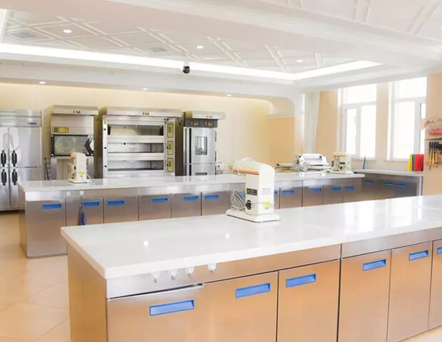 百分之百以大中型烘焙店铺为样板,从收银系统到运营,再到产品摆台、展柜布置等,切实的让学员感受将来的工作环境。